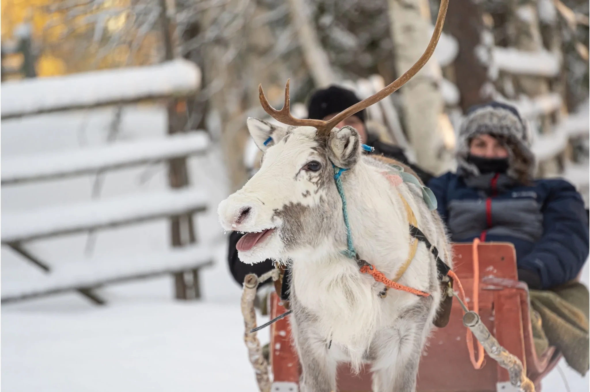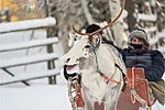 White snow, peaceful forests, and the gentle glide of a reindeer sleigh — experience the magic of Lapland from the comfort of a warm sleigh as you travel through the wintry wilderness.